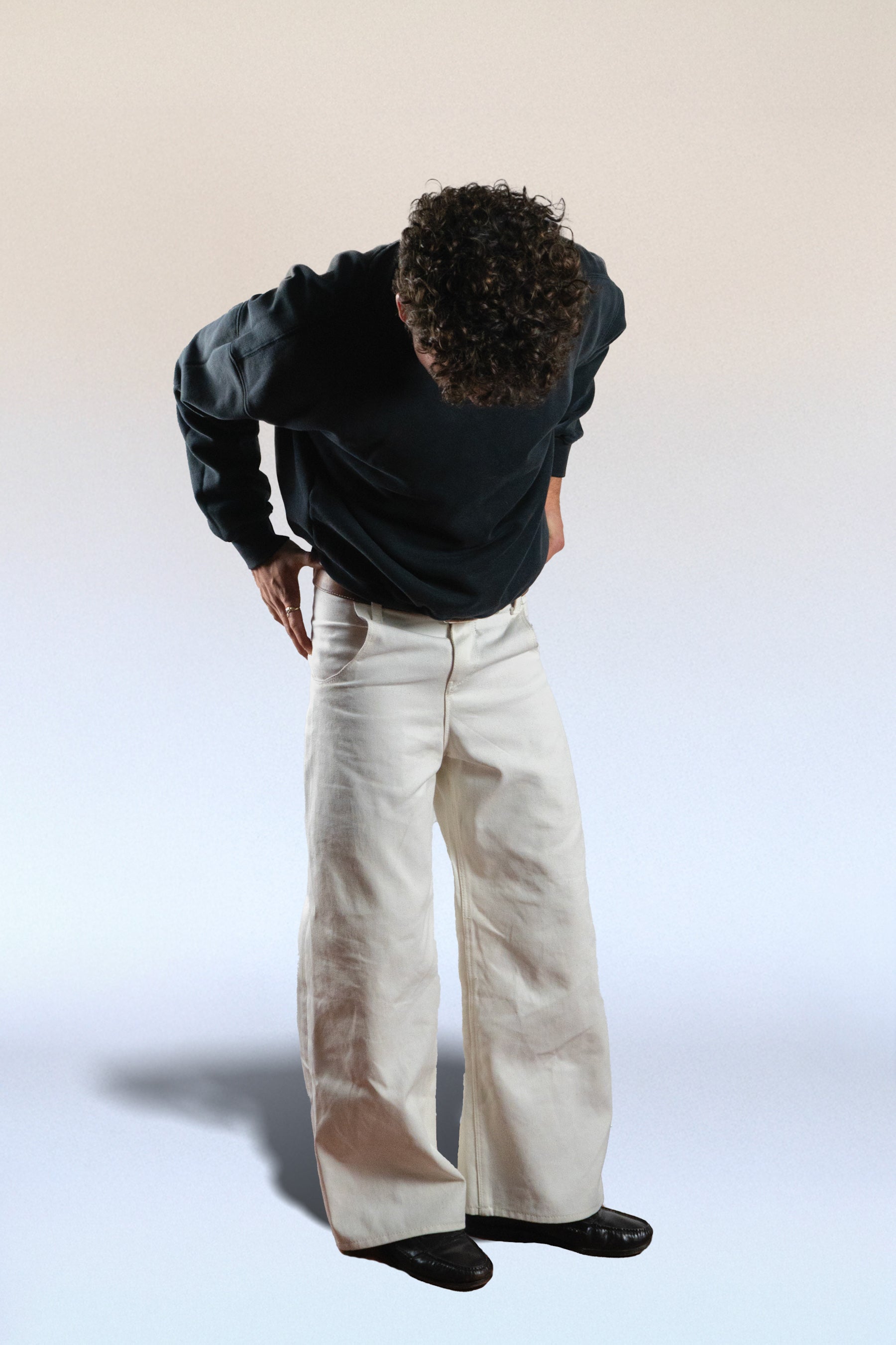 The perfect pair of 14oz white Bull Denim jeans for any occasion. When crafting these jeans we focused on creating a timeless silhouette, featuring an 11.5 inch leg opening with a classy wide leg fit.